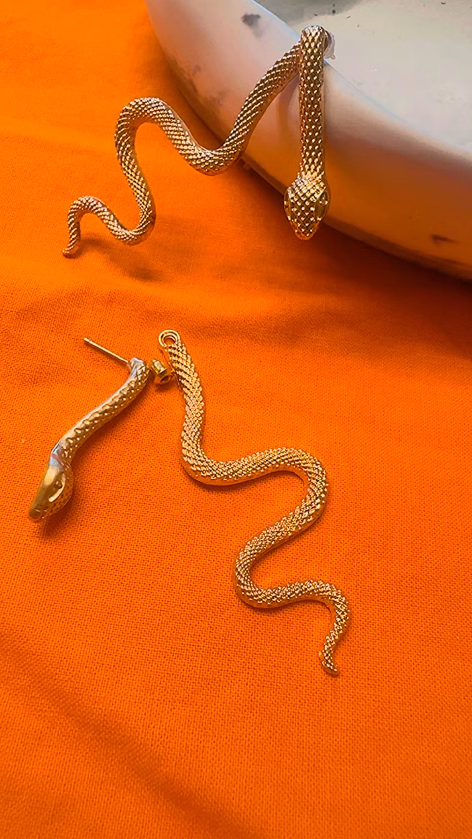 Ge din look en djärv och elegant touch med dessa ormformade statementörhängen. Den unika front-och-bak-designen ger en lyxig känsla och gör smycket lika vackert framifrån som från sidan. Perfekt för dig som vill sticka ut – både till vardags och vid speciella tillfällen.